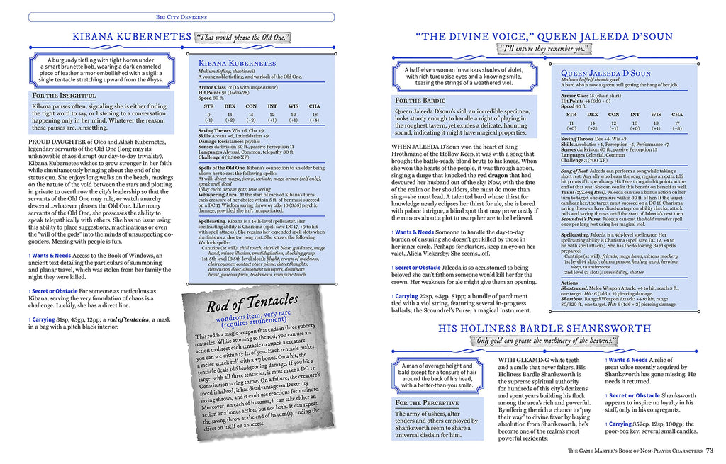 500+ unique bartenders, brawlers, mages, merchants, royals, rogues, sages, sailors, warriors, weirdos and more for 5th edition RPG adventures