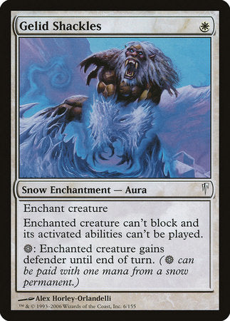 Enchant creature Enchanted creature can't block, and its activated abilities can't be activated. {S}: Enchanted creature gains defender until end of turn. ({S} can be paid with one mana from a snow permanent.)