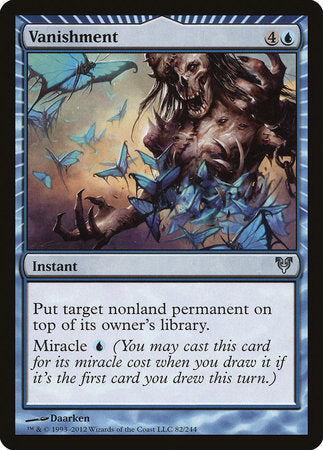 Put target nonland permanent on top of its owner's library. Miracle {U} (You may cast this card for its miracle cost when you draw it if it's the first card you drew this turn.)